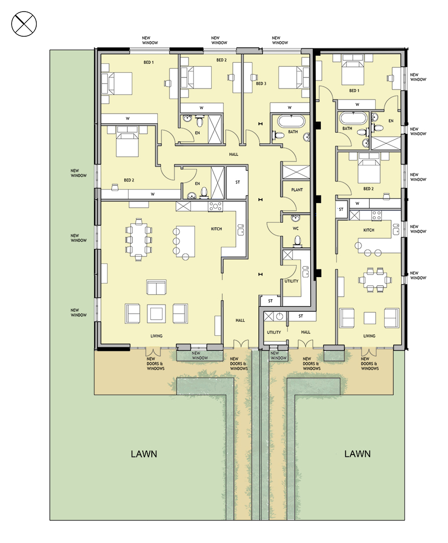 Having previously obtained Class Q approvals for similar steel-framed barns, it was considered that the Local Authority’s interpretation of Class Q was incorrect. Consequently, a third application was submitted. This revised proposal sought to subdivide the barn into two dwellings, with access provided via the newly constructed farm track.